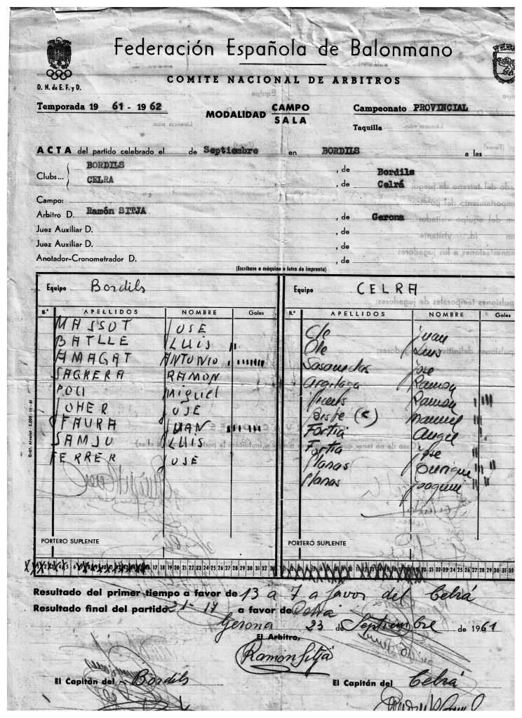 Carnet de soci nº 10 en l’any de fundació oficial del Handbol Bordils (llavors Club de Balonmano Bordils).1961