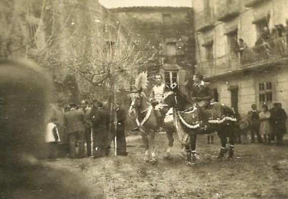 Cavalls engalanats al carrer dels Hostals.Bordils 1962