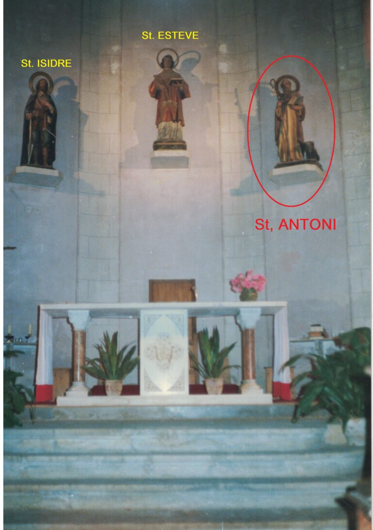 Imatge de Sant Antoni Abad a l’església de Bordils l’any 1976