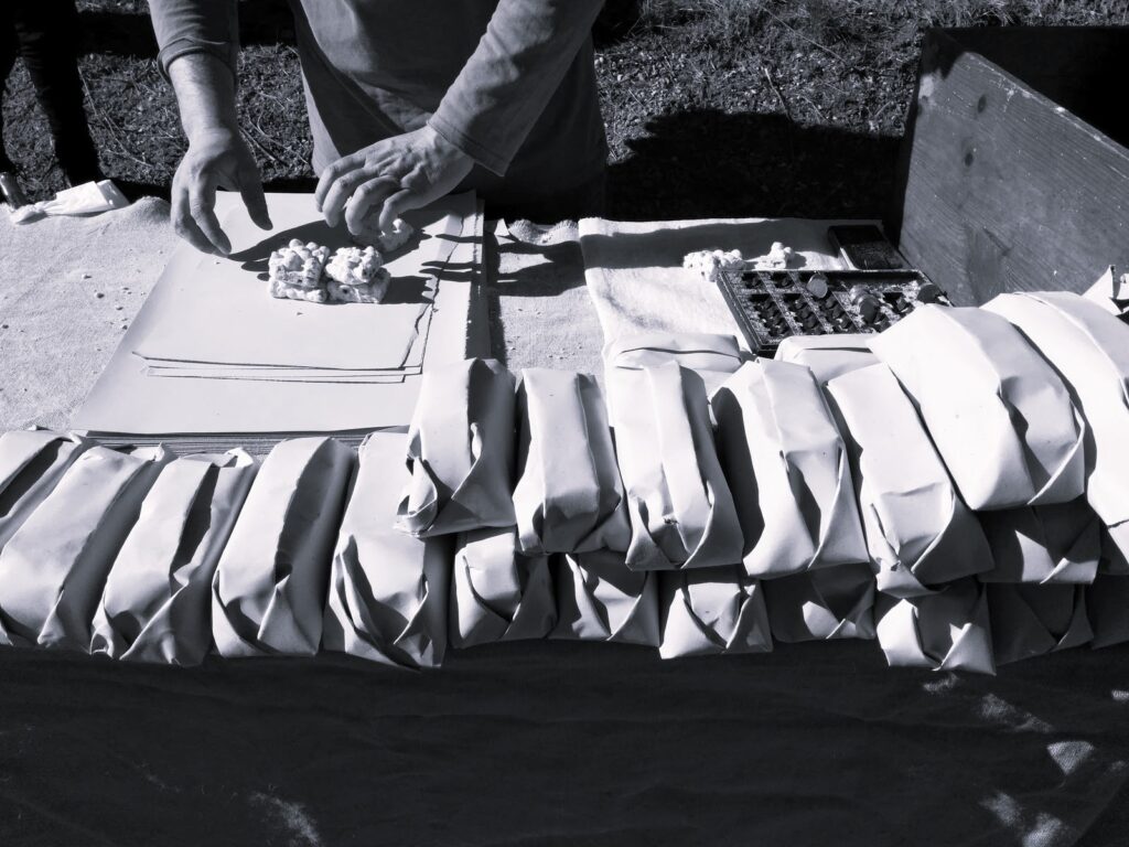 En sortir de l’Ofici Solemne, feien una subhasta dels pans rodons i de peus de porc, que la gent havia regalat en entrar a l’església, L’encarregat de fer l’adjudicació a la millor oferta, era en Pep Grau des del pedrís de davant l’església.