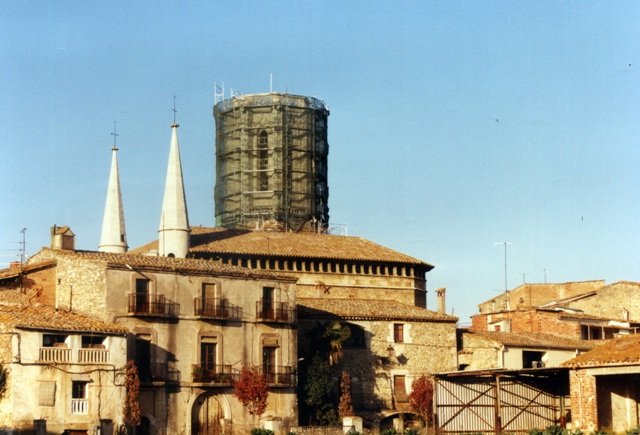 Entrada al carrer Sant Esteve des de la plaça de l’Església. En primer terme l’edifici de l’antic Ajuntament. 2003